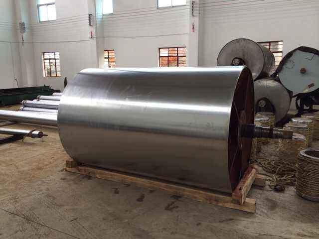 烘缸缸是用鑄鐵制成的兩端有蓋的空心圓筒,由缸體及其兩端的缸蓋組成,外徑多為1000~3000mm,在運轉過(guò)程中,內通蒸汽將輸送的紙張烘干燙光。